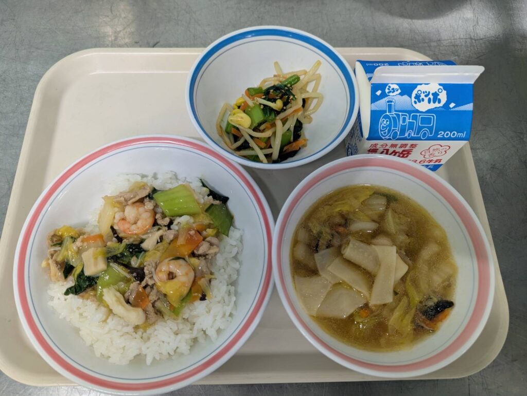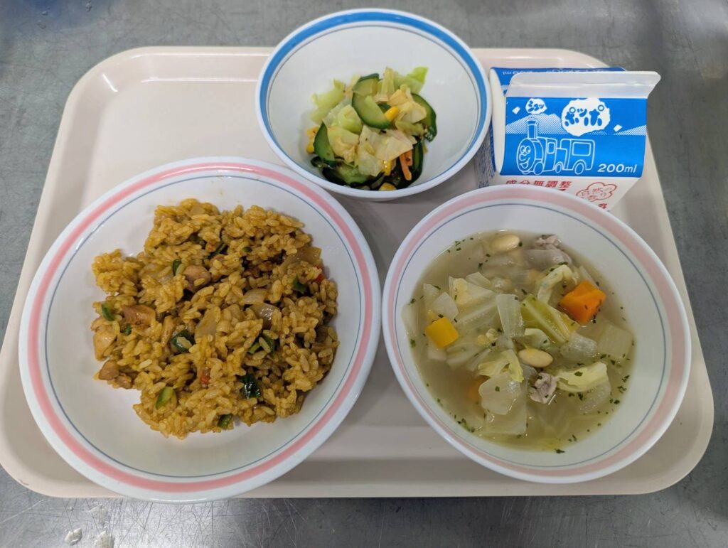 日本語指導教室で給食を食べながら、外国語や外国の文化について知る企画を実施しました。日本語指導教室はあまり大きくないので、募集をかけ、応募した児童の中から抽選を通った人がこの企画に参加できます。とても異文化交流を楽しむ児童の姿が見られました。