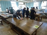 図工の時間に、好きな形に切り分けた板を組み合わせて工作する活動をしています。補教の角材を入れたり、くっつける面を多くしたりするなどの工夫が、組み立てていく際の大事なポイントになります。のこぎりで板を切り分けるのに疲れてしまったり、ボンドが乾く前に崩れてしまったりとなかなか苦戦している様子も見られましたが、どの児童も一生懸命に活動していました。授業のしっかりと片付けをする姿もすてきでした。