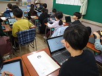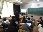 社会の時間に、戦争のことに学んでいます。この日は、自分たちが学んだことをグループごとに語り合う会を開きました。「話す時間が足りない!」と言う児童の姿から、充実した学習を行ってきたことが分かりました。