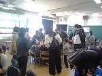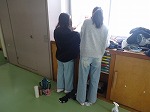 家庭科の時間に、今までの学習を生かして学校をよりよくする活動を行っています。この日は、校舎内のあちこちで掃除や片付けを行っている姿が見られました。黙々と働き続ける姿に、学校に対する熱い思いを感じました。
