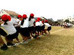 高学年団体競技「綱引き」。最後の得点種目、下級生は声の限りの大きな声で声援を送ります。最後の種目にふさわしい熱戦でした!!予定より25分早くスタートしました。