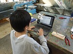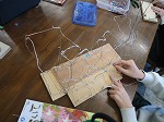 針金を使って、自分の世界を楽しく表現する学習を行っています。作品を作る前のイメージやできた作品の紹介などをパソコンでそれぞれまとめるのですが、その一覧を大きなモニターに映しています。友達の作品の様子や進捗状況を一目で確認することができ、参考にしたり鑑賞したりするのにとても便利です。