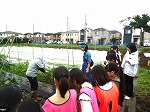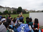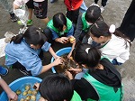 防災学習の一環で、炊き出し体験を行いました。旅する料理人の三上さんに、様々なアドバイスをいただきながら、大きな鍋で汁物を作っていきます。地震で断水しているという設定での体験なので、野菜を洗う水や汁物で使う水は、小金井市の応急給水所になっている上水南配水所に行っていただいてきました。汁物に入れる野菜は、近隣の農家さんの畑に行き、わけていただきました。また、地域安全課の方に御協力いただき、防災倉庫にある大きなかまどと鍋を使って調理をしました。近隣のお総菜屋さんにお味噌を分けていただいたり、東京学芸大学の学生さんや近隣の町会の皆様にお手伝いをしていただいたりしながら、おいしい汁物を完成させることができました。地域のつながりを感じることができる、とてもすてきな取組になりました。