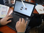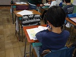社会の時間に、江戸時代の学習をしています。この時間では、江戸時代について自分なりに学習したことを、1グループ10分の持ち時間で他の児童にミニ授業という形でプレゼンするための準備をしていました。一人で自分の思うがままに学習を進める児童、複数で協力して学習を進める児童、パソコンを使う児童、ノートにまとめていく児童、画用紙に絵を描く児童などなど、自分のやりやすい形で学習が進められるので、とても意欲的に取り組む姿が見られました。
