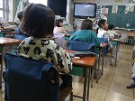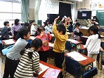 日本の伝統的なわらべ歌のリズムが聞こえてきたので教室をのぞいて見ると、のりのりで歌いながら体を動かしている児童の姿が見られました。デジタル全盛の時代ですが、児童の様子を見ていると、こういった伝統的なものもきっと楽しく受け継がれていくのだろうなと感じました。