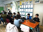鳴門市大津西小学校さんと、オンライン交流会を企画しています。この日は、交流会での出し物をグループごとに相談する時間をとりました。初めて話す児童同士でしたが、とても楽しそうに話をする姿が見られました。