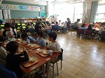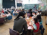 送る会の後は、6年生が下級生のクラスに数人ずつ行き、お別れ給食です。各クラスのグループの中に6年生が入り、楽しく会食しました。
