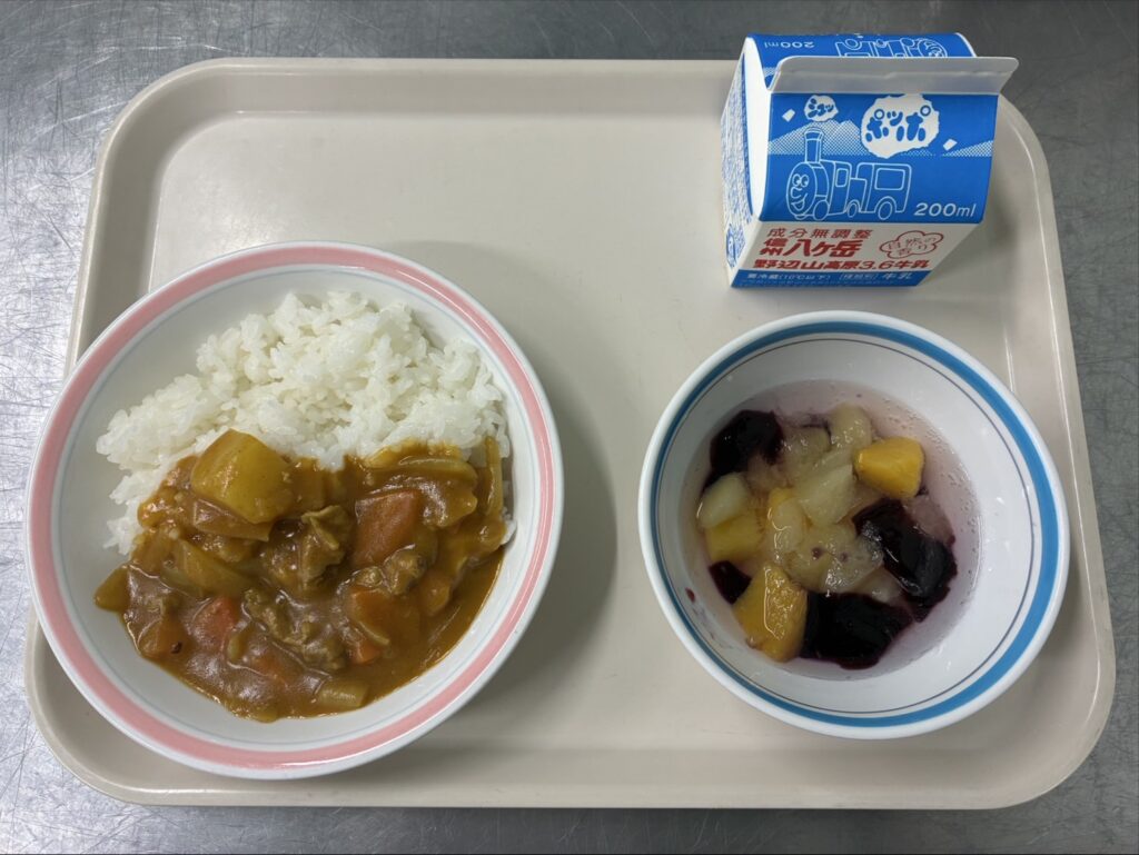 2/25カレーライス/フルーツゼリーパンチ/ぎゅうにゅう