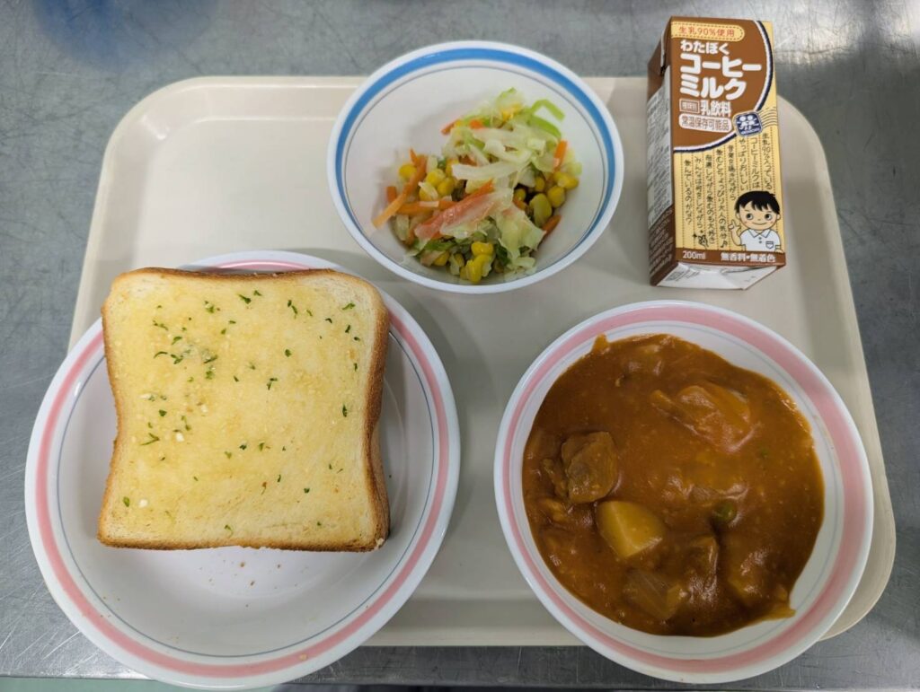 ガーリックトースト/ポークシチュー/コールスローサラダ/コーヒーぎゅうにゅう