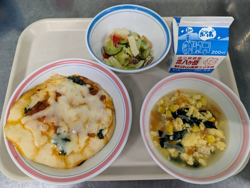 マルゲリータ/ふわふわたまごスープ/マリネサラダ/ぎゅうにゅう