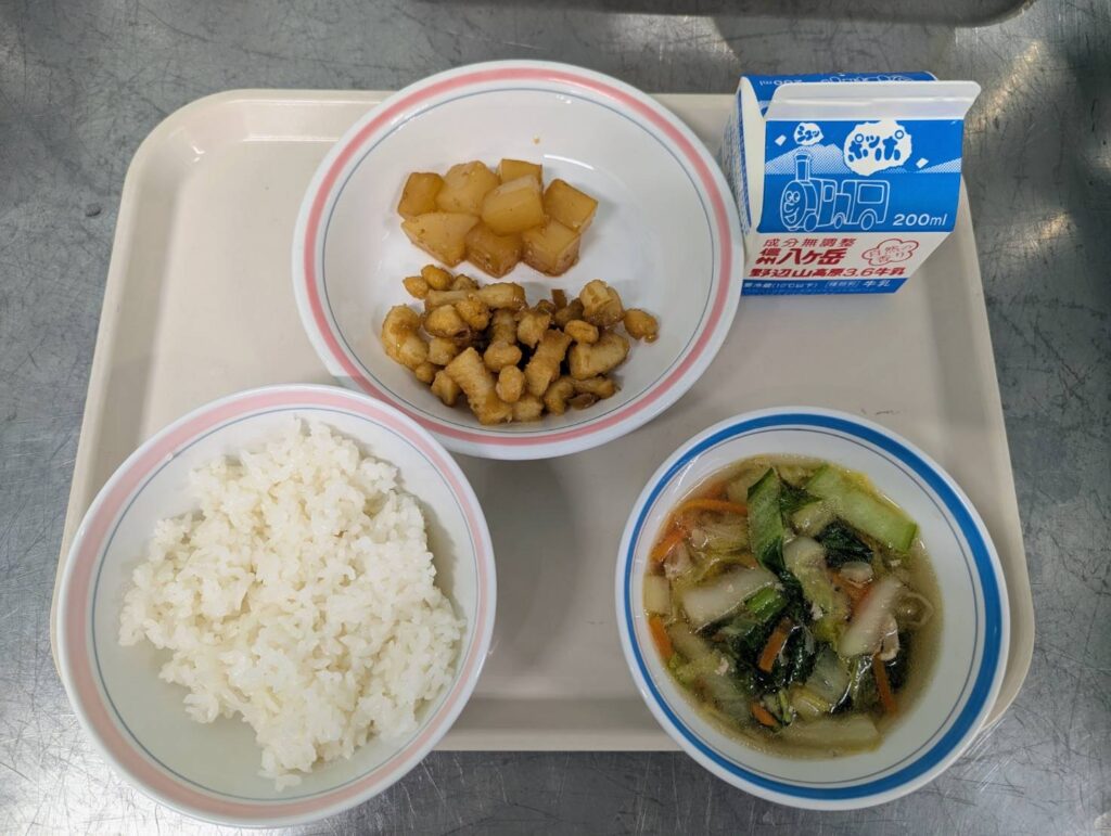 1/15ごはん/いかとだいずのユーリンチーふう/ピリからだいこん/はくさいスープ/ぎゅうにゅう