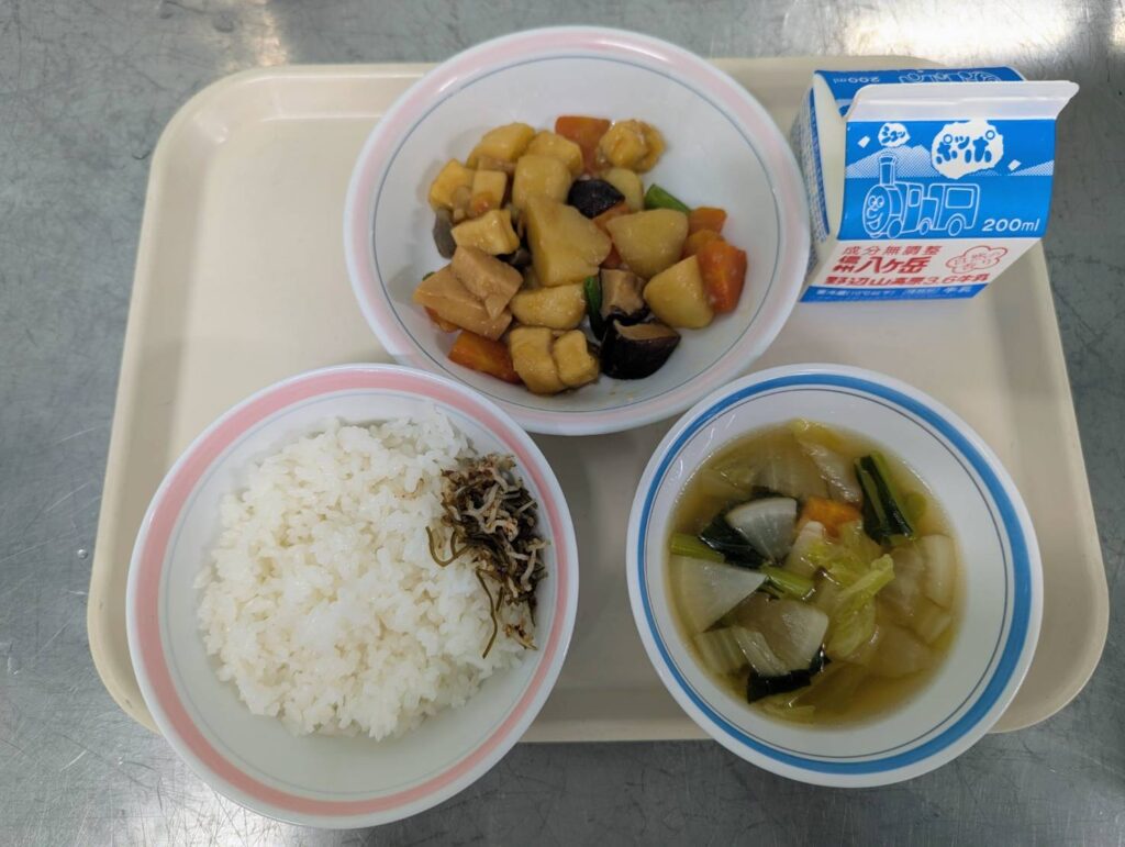 1/15ごはん/いかとだいずのユーリンチーふう/ピリからだいこん/はくさいスープ/ぎゅうにゅう