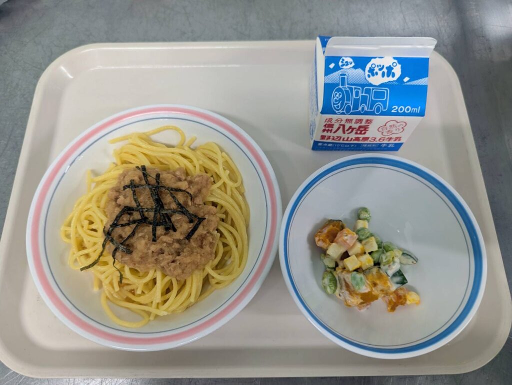 ツナおろしスパゲッティ/パンプキンサラダ/ぎゅうにゅう