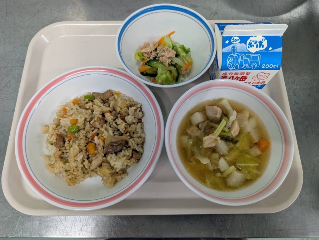 とんテキライス/しろいんげんまめのスープ/ツナサラダ/ぎゅうにゅう