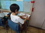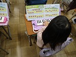 音楽の時間に、運動会定番の「ゴーゴーゴー」という歌を歌っています。赤と白に分かれて掛け合う形が楽しい歌です。今年の運動会では、赤白で競い合う形が復活するので、この歌を歌うと運動会気分がとても盛り上がります。歌の後は、鍵盤ハーモニカの練習をしました。2~4人のグループになり、声を掛け合って練習する姿が微笑ましかったです。