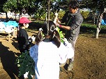 近隣の畑で、大蔵大根の収穫をさせていただきました。大きく育った大根を全力で引っこ抜くのはなかなか大変でしたが、児童は大きそうな大根を狙って楽しそうに収穫をしていました。御協力いただいく農家の方が近隣にいらっしゃることは、本当に幸せなことだと思います。心より感謝申し上げます。