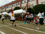 4年生学年リレー。今年から短距離走ではなく全員リレーに変更しています。児童は、大興奮で応援しています!!予定より7分早くスタートしています。