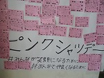 ふれあい月間恒例のイベント、「ピンクシャツデー」が11月も実施されました。ピンク色があちらこちらに見られ、学校が優しい雰囲気に包まれるイベントです。いじめをなくすためにというテーマでそれぞれが考えたコメントを掲示するコーナーも設けられており、温かいコメントが並んでいました。