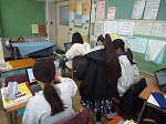 社会科の時間に、自動車をつくる工業について学習しています。この日は、世界の車の生産台数や自動車メーカーの売り上げなどの情報をもとに、今後の学習課題を確認し、日本の自動車メーカーの工夫について考えました。本町小では、自然とグループができ、それぞれの考えを交流しながら学習を進めるスタイルが定着しつつあります。