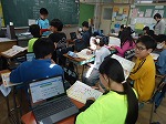 社会科の時間に、自動車をつくる工業について学習しています。この日は、世界の車の生産台数や自動車メーカーの売り上げなどの情報をもとに、今後の学習課題を確認し、日本の自動車メーカーの工夫について考えました。本町小では、自然とグループができ、それぞれの考えを交流しながら学習を進めるスタイルが定着しつつあります。