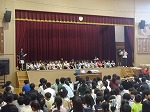 60周年記念集会朝の時間と1時間目を使って全校児童が集まり、60周年をお祝いする集会を開きました。企画運営は、集会委員会の児童です。まずは、各学年・クラスから60にちなんだ取組の発表が行われました。良く工夫された楽しい取組ばかりで、会場は大盛り上がりでした。6年生が調べた本町小の歴史についての発表コーナーもありました。興味津々で発表を聞く下級生の姿が見られました。発表では、60周年記念品としてPTAから寄贈されたプロジェクターが大活躍でした。温かい御支援に感謝です。みんなで協力して記念のケーキを体育館の中心に作り上げ、校歌を歌い、お祝いムードが最高潮になったところで集会が終了しました。