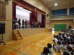短縄週間に合わせて、短縄集会を行いました。運動委員会の児童が、短縄の跳び方のお手本を見せていきます。高学年児童が上手に跳ぶ姿を、下級生が食い入るように見ていました。