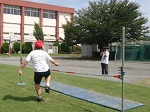 体育の時間に、柔らかいビーチボールを使って、ソフトバレーボールを行っています。チームで声を掛け合い、協力してボールをつなぐことが大切なこのスポーツ。なかなか難しいですが、大きな声が飛び交い、とても盛り上がっています。
